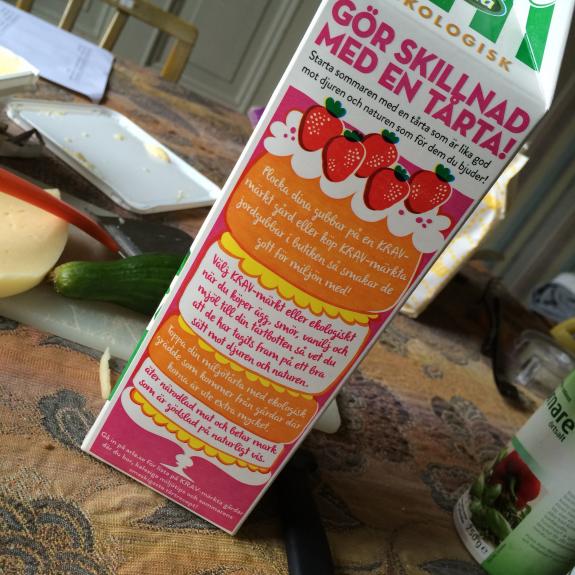 Det ekologiska mjölkpaketet tycker att jag skall baka en tårta. Jag hatar tårta! Jag hatar grädde. Jag hatar sött. Jag är inte ens gullig.