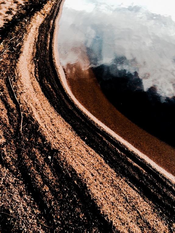 Vassa blad ligger på marken. Halvnakna. Jag samlar ihop dem i högar och lyfter bort. Hög på hög. Jag är ute med barnen, de har lov. En stund senare åker vi till Dellen. Kastar sten, samlar mönster, följer bäcken. Det pågår en höstsalong bland träden, sjön och himlen. Ibland vet jag inte vad jag ser.