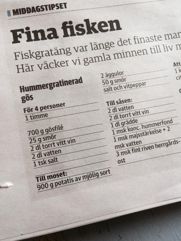 Jag letar ord som skulle kunna luta sig in under begåvningens tunga. Fastnar för ett recept "fina fisken". Tänker osökt på lakrits, det är alldeles för sällan det ligger lakrits i min brevlåda, alldeles för sällan lokaltidningen skriver något jag vill läsa. Kan läsa. Jag står inte ut bland orden. Står inte ut. Rättstavning, grammatik, enkelspårighet och rädslor, det bygger inte ett språk, det bygger distans och olust till språk som också kan skapa lust och passion att vilja läsa. Eller? Viljan till sanningen. För det måste vara journalistens röst. Eller?