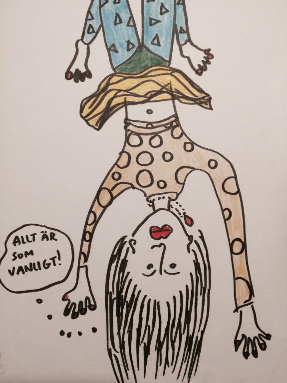 Hjalmar ligger på min säng och spelar ett spel, Arvid sitter vid köksbordet mittemot mig och fnittrar högt. Han ritar serier.
