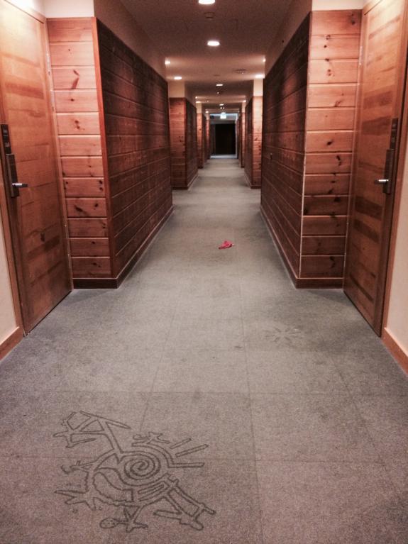 Sedan kliver jag ut i Barcelona, men jag tänker på korridoren, där man ville springa, på hotellet i Åre. Där man tar in för att få bada. Dit alla åker. Vanliga lagoma Svenssons. Jag tappade mina lagoma rosa trosor där på golvet. Bland alla lagoma Svenssons som vill springa det fortaste de kan i korridoren.