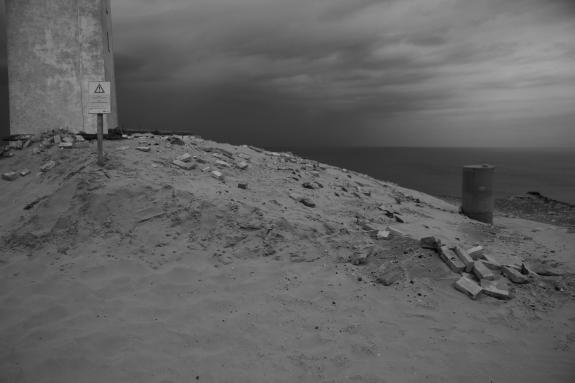 Nu tog det slut på havet och horisonten och ljuset och färgerna. Det bleka färgerna, det lugnande fast det vilda. Ett hårt hav med sand i ögonen och piskande regn. Det påminner om något annat, alltid påminner allting om något annat.